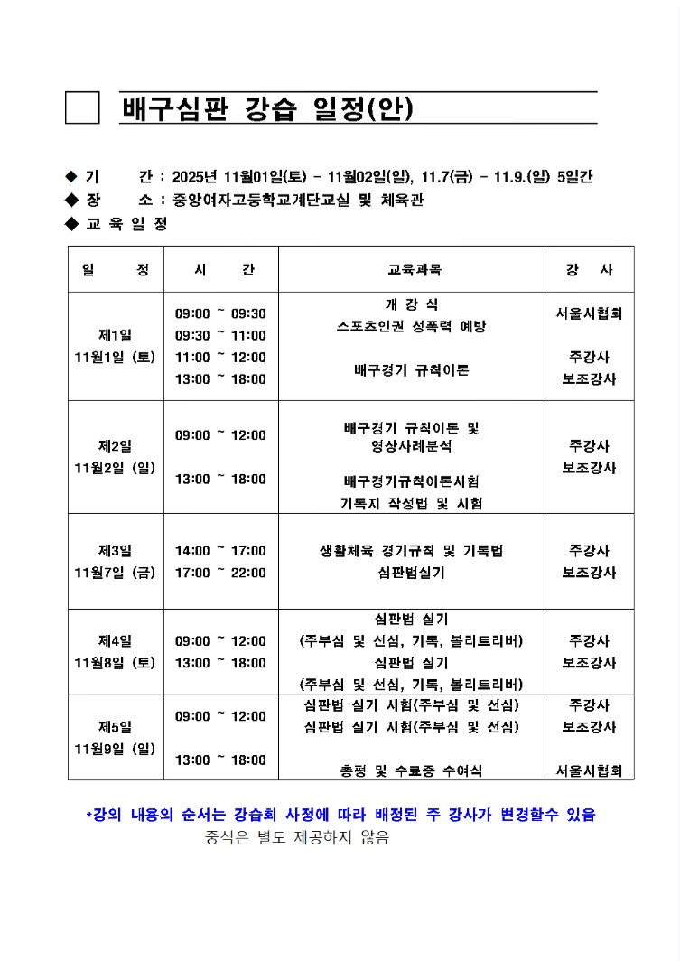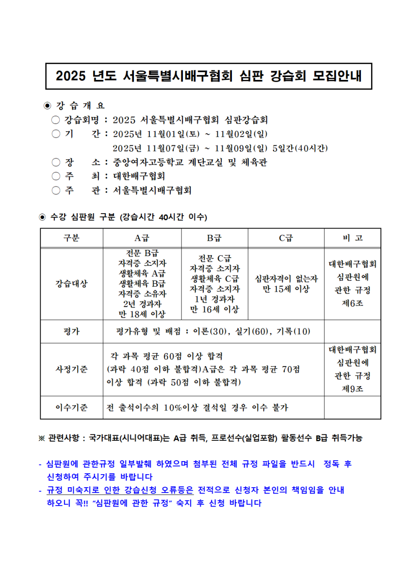 강습회 2025 서울시 심판강습회 모집안내 - 배구 심판