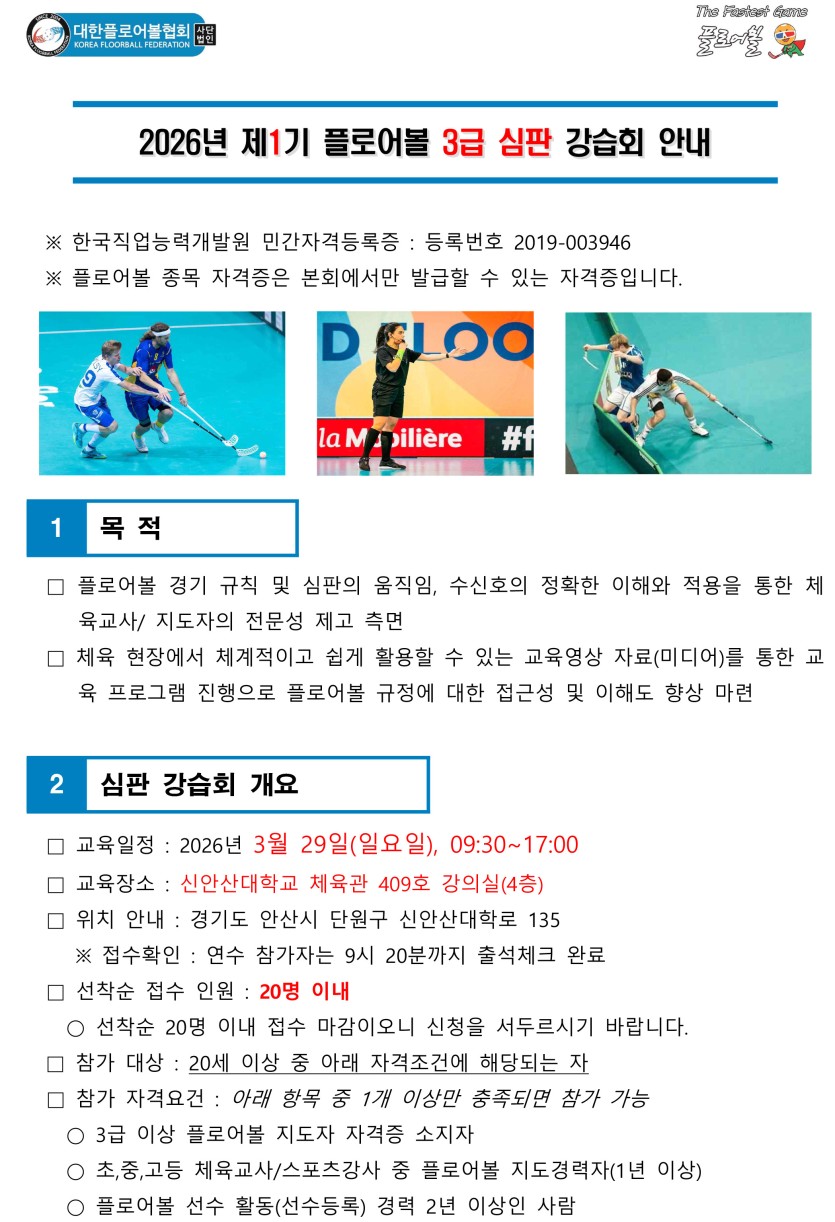2026년 제 1기 플로어볼 3급 심판 강습회 > 대회/강습회/기타 정보