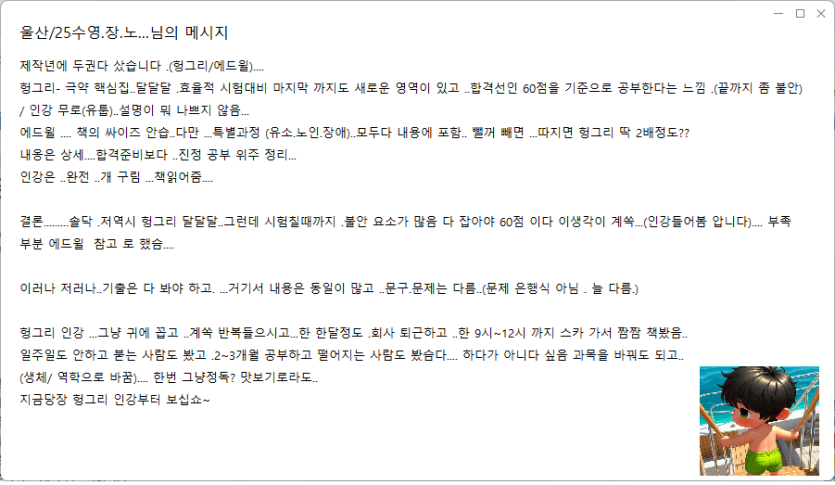 - 이전글오픈톡방 - 깡시골 스위머님의 실기시험 회상 편 26.02.12