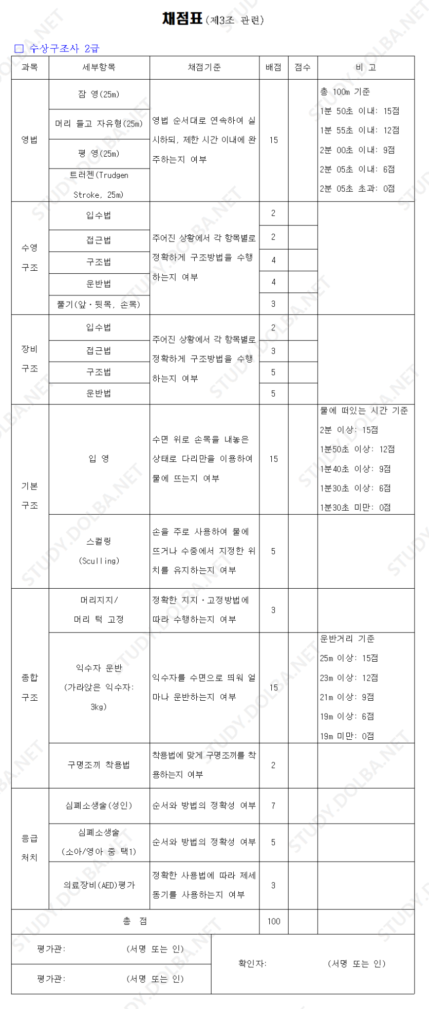 수상구조사 2급 실기시험 재점표 정리 (제3조 관련)