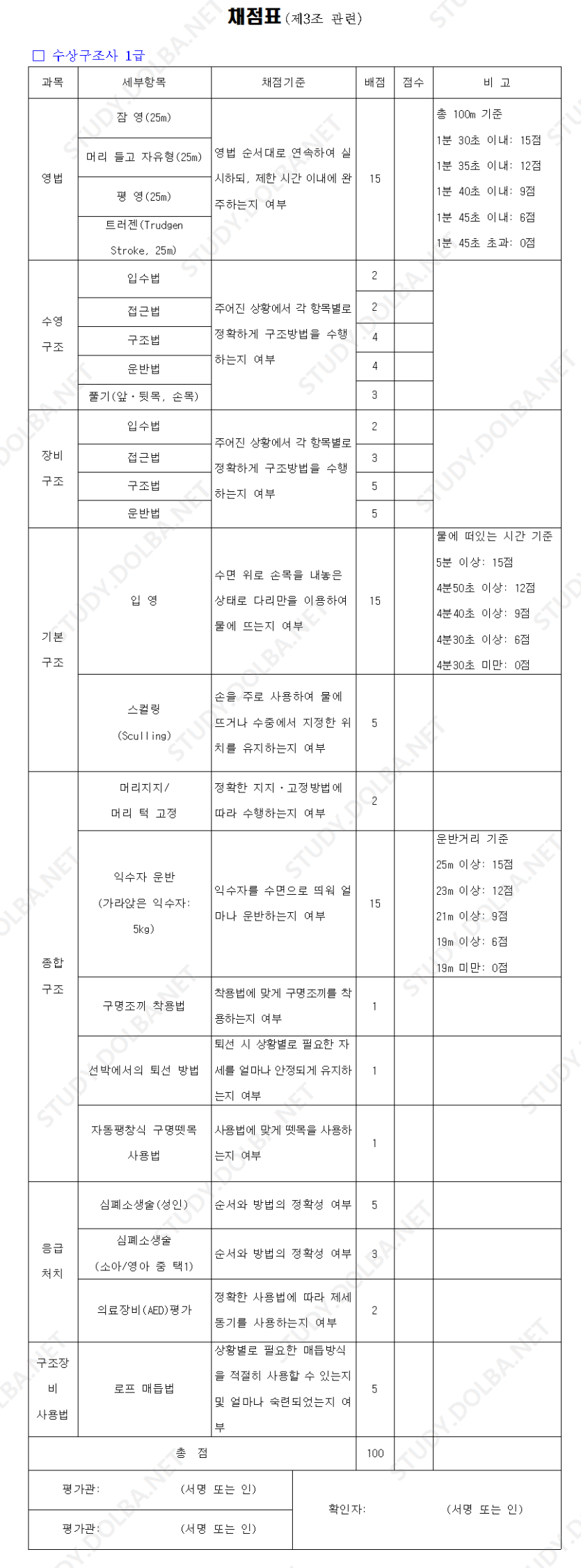 수상구조사 1급 실기시험 재점표 정리 (제3조 관련)