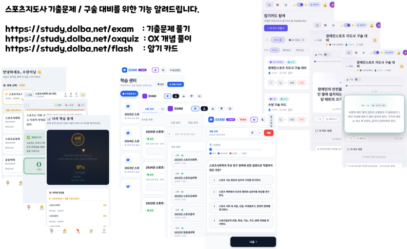 기출문제 풀어보기, 구술카드 사이트, OX 개념 문제 풀이 사이트를 리뉴얼 하였습니다.