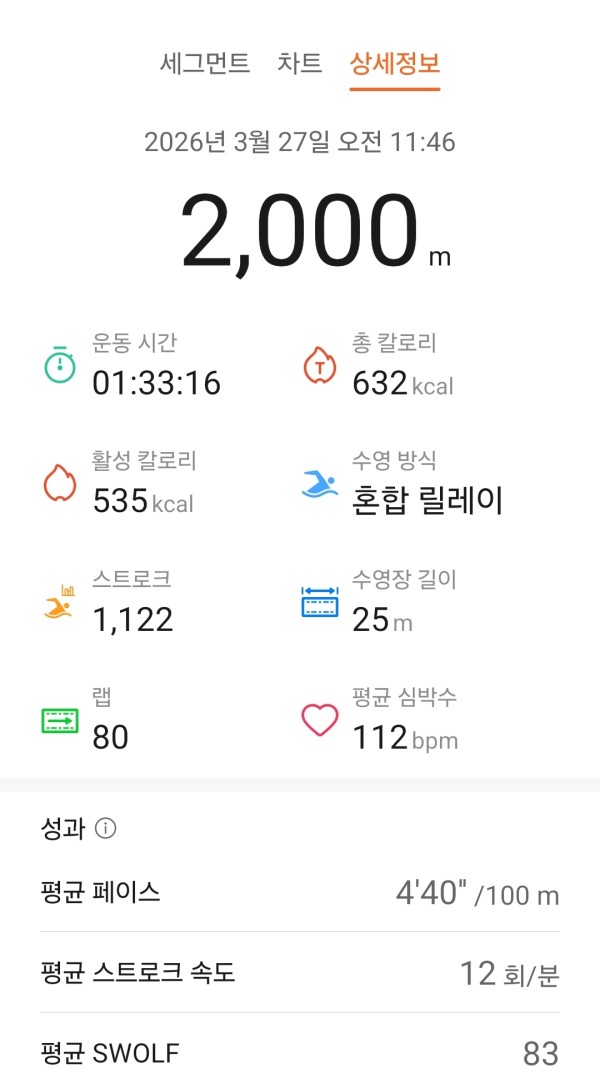 오늘도 오운완입니단(*/∀\*) 페이지 정보 작성자 밍하 댓글 0건 조회 43회 작성일 26-03-27 14:53 목록 본문 스컬링을 많이하긴 했지만 어찌저찌 2000m 채웠습니드안 (。・´д`・。) 추천0 비추천0 이전글오! 운! 완! 26.03.27 다음글오! 운! 완! 26.03.27 댓글 0 댓글목록 등록된 댓글이 없습니다.