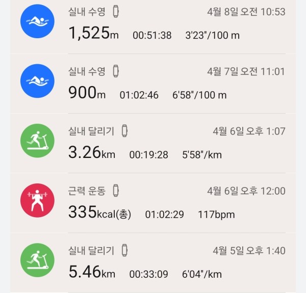 4/7 강습900+400(400은 기록이 안잡혔음다) 끝나고 대쉬연습 (대쉬연습은 스톱워치로 해서 몇m했는지는 모르겠음다)